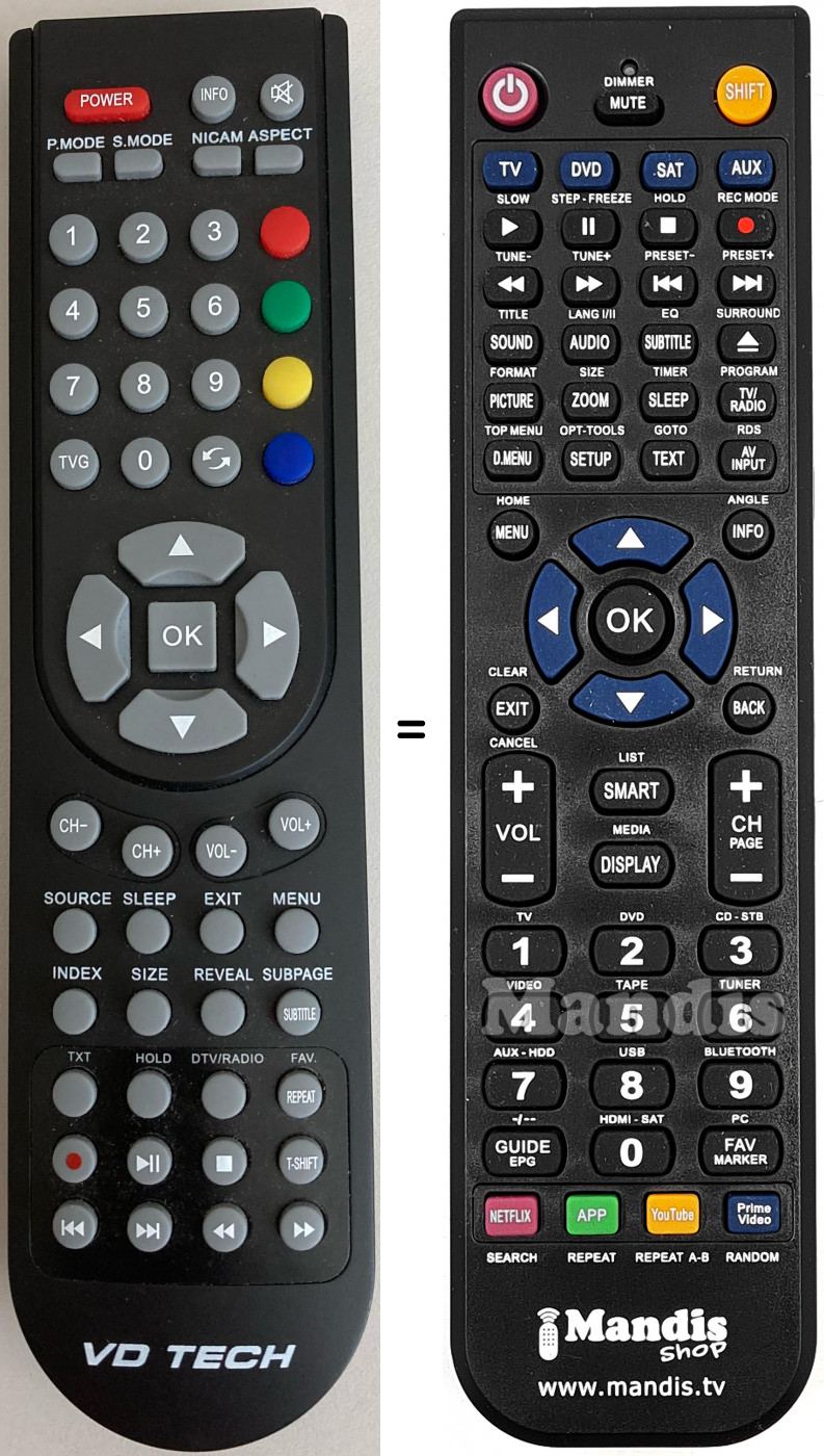 Accueil > Marques > Télécommandes VD Tech > Télécommande pour VD Tech TQL26R2VD001