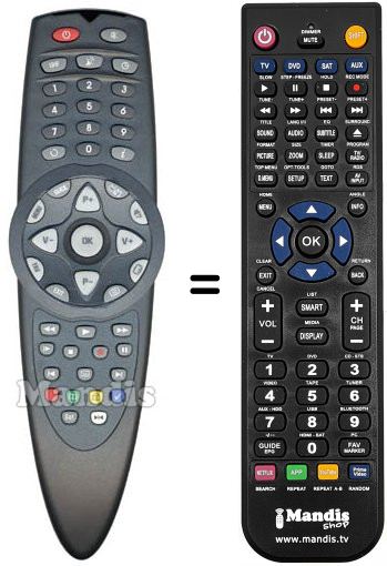 Télécommande qui remplace celle d'origine car elle possède les mêmes fonctions.
