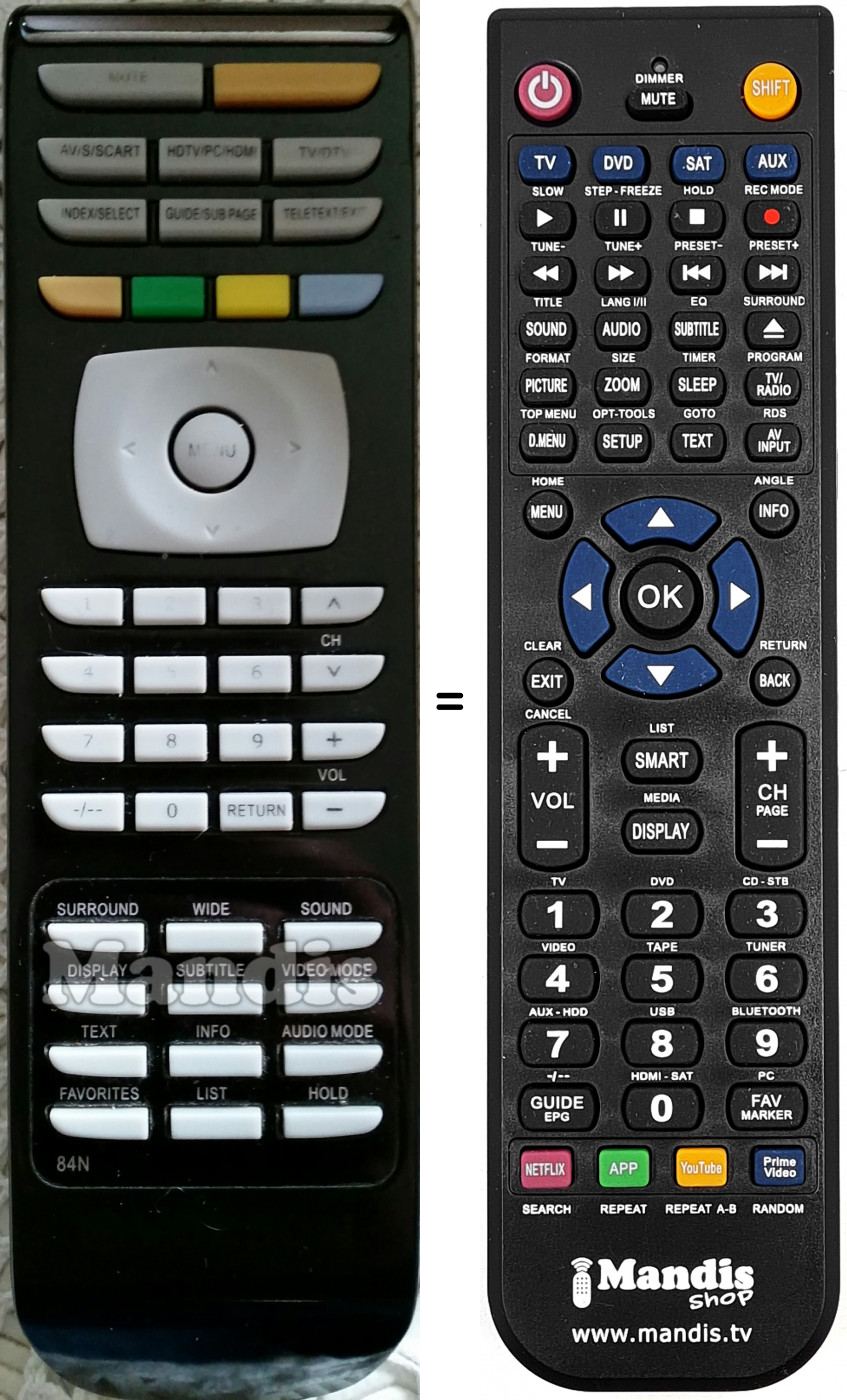 Télécommande qui remplace celle d'origine car elle possède les mêmes fonctions.