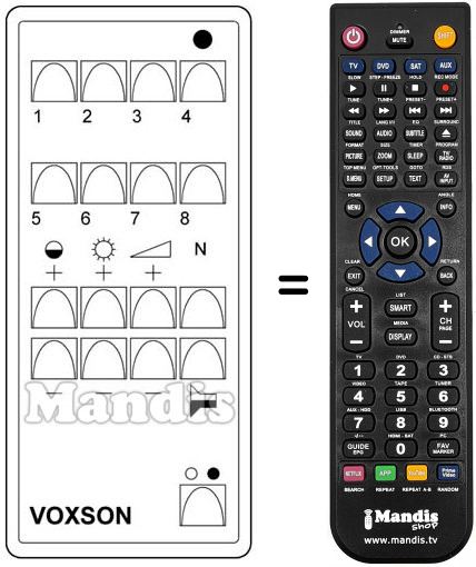 Télécommande qui remplace celle d'origine car elle possède les mêmes fonctions.