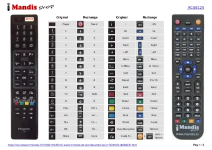 Un document est inclus pour vous aider à utiliser facilement la nouvelle télécommande, en indiquant la correspondance des boutons.