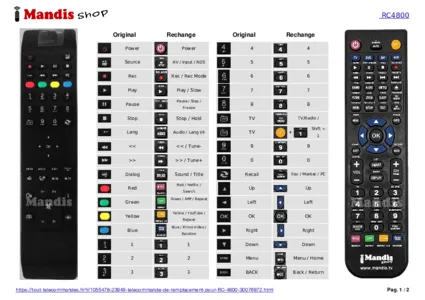 Un document est inclus pour vous aider à utiliser facilement la nouvelle télécommande, en indiquant la correspondance des boutons.