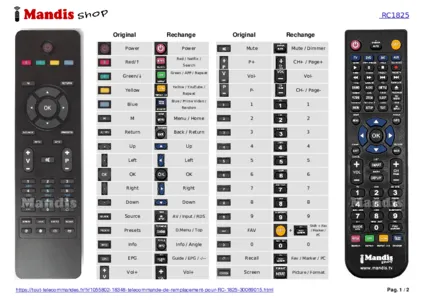 Cette télécommande remplace entièrement votre RC 1825 (30069015) et offre toutes les fonctions de l'originale.