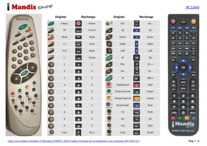 Un document est inclus pour vous aider à utiliser facilement la nouvelle télécommande, en indiquant la correspondance des boutons.