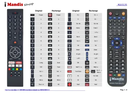 Un document est inclus pour vous aider à utiliser facilement la nouvelle télécommande, en indiquant la correspondance des boutons.