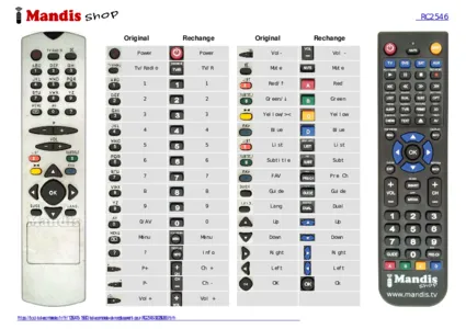 Un document est inclus pour vous aider à utiliser facilement la nouvelle télécommande, en indiquant la correspondance des boutons.
