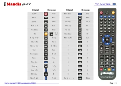 Un document est inclus pour vous aider à utiliser facilement la nouvelle télécommande, en indiquant la correspondance des boutons.
