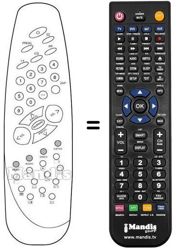 Télécommande qui remplace celle d'origine car elle possède les mêmes fonctions.