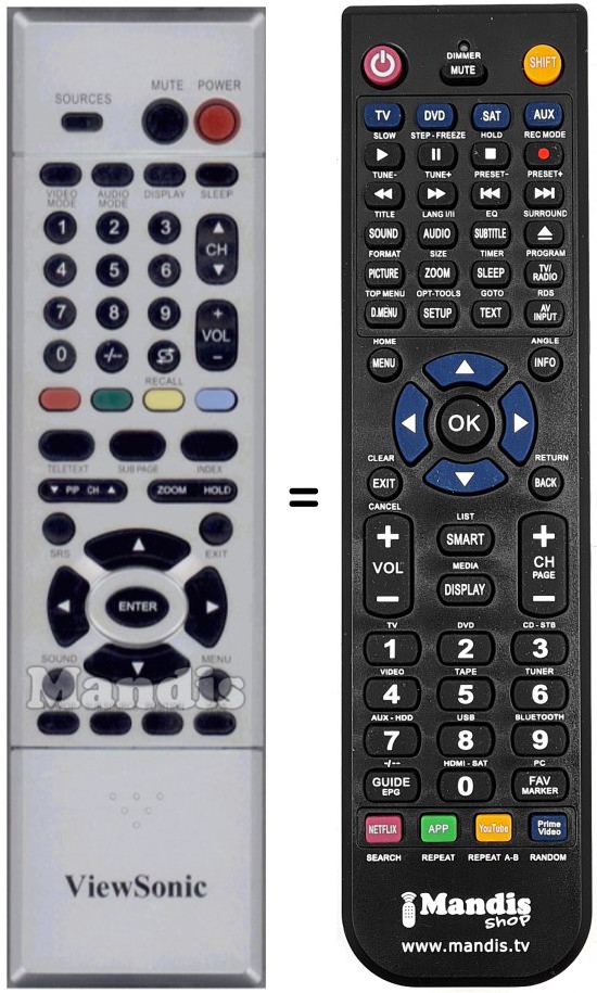 Télécommande qui remplace celle d'origine car elle possède les mêmes fonctions.