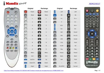 Un document est inclus pour vous aider à utiliser facilement la nouvelle télécommande, en indiquant la correspondance des boutons.