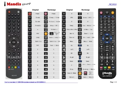 Un document est inclus pour vous aider à utiliser facilement la nouvelle télécommande, en indiquant la correspondance des boutons.