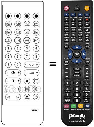 Télécommande qui remplace celle d'origine car elle possède les mêmes fonctions.