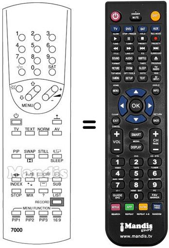 Télécommande qui remplace celle d'origine car elle possède les mêmes fonctions.