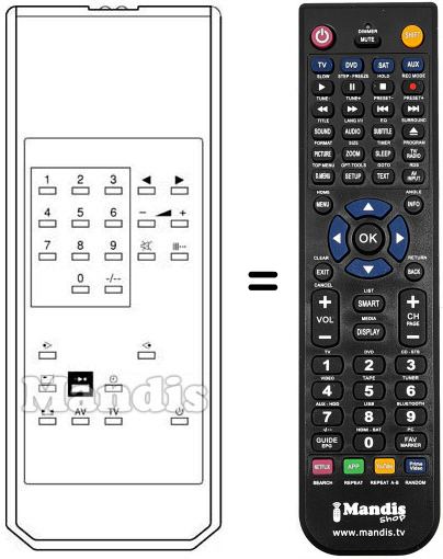 Télécommande qui remplace celle d'origine car elle possède les mêmes fonctions.
