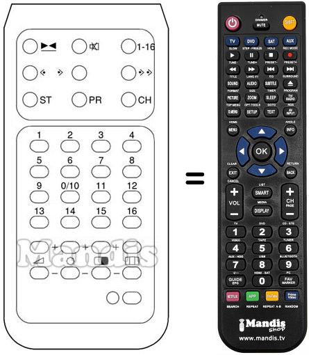 Télécommande qui remplace celle d'origine car elle possède les mêmes fonctions.