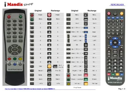 Un document est inclus pour vous aider à utiliser facilement la nouvelle télécommande, en indiquant la correspondance des boutons.
