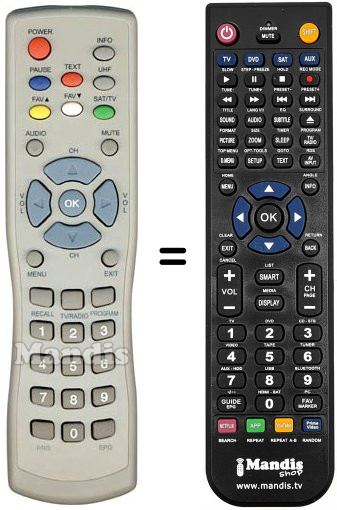 Télécommande qui remplace celle d'origine car elle possède les mêmes fonctions.