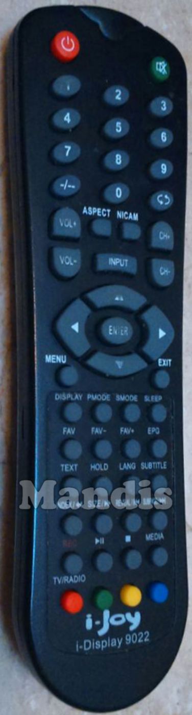 Télécommande d'origine I-Display 9022 pour téléviseurs de la marque i-Joy. Il s'agit d'un modèle de télécommande d'origine.