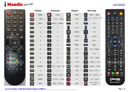 Un document est inclus pour vous aider à utiliser facilement la nouvelle télécommande, en indiquant la correspondance des boutons.