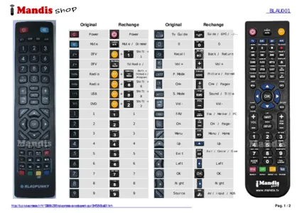 Un document est inclus pour vous aider à utiliser facilement la nouvelle télécommande, en indiquant la correspondance des boutons.